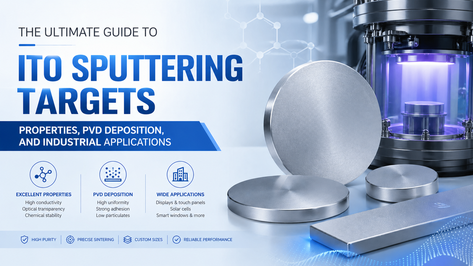 However, the quality of the deposited ITO thin film is inextricably linked to the quality of the source material: the ITO sputtering target. For process engineers, R&D scientists, and procurement managers, understanding the intricacies of ITO target manufacturing, Physical Vapor Deposition (PVD) parameters, and troubleshooting techniques is crucial for maximizing yield and minimizing downtime.